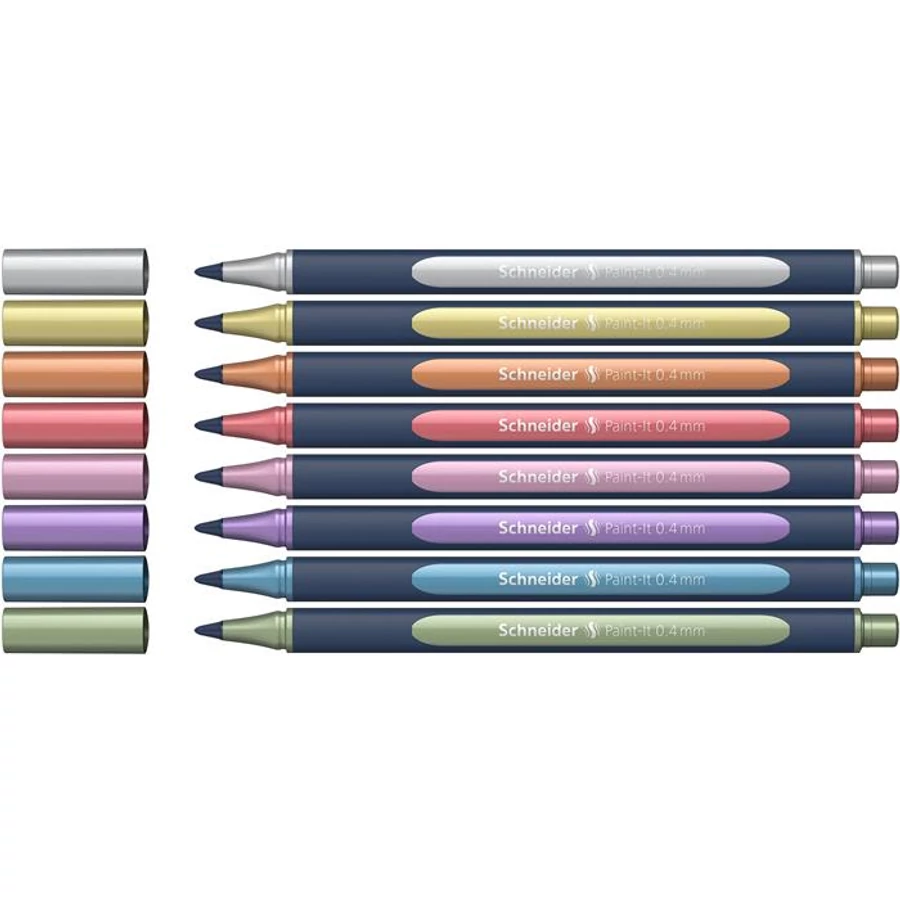 Metálfényű rollertoll készlet, 0,4 mm, SCHNEIDER "Paint-It 050" 8 különböző szín