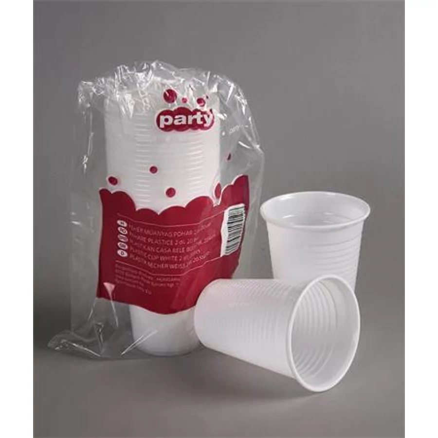 Műanyag pohár, 2 dl, 20 db, "Party", fehér