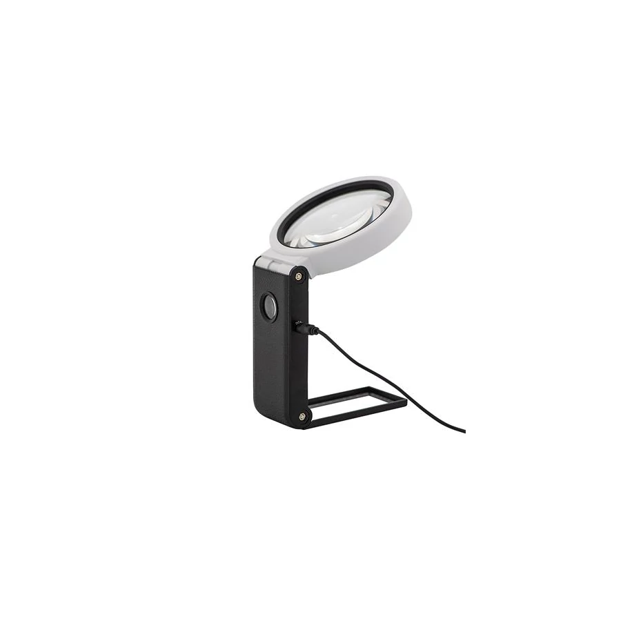 Nagyító, 90 mm, kihajtható állvánnyal, LED fénnyel, WEDO, fekete/fehér