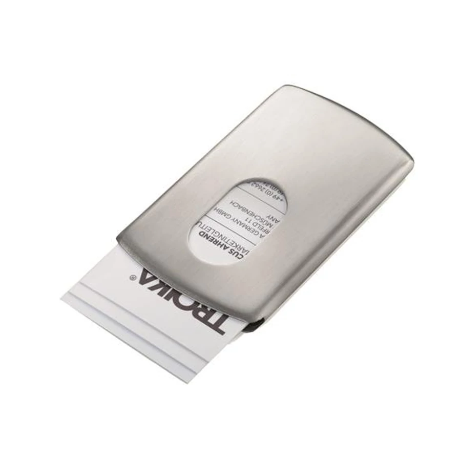 Névjegykártya tartó tárca, fém, 12 db-os, TROIKA "Slide"