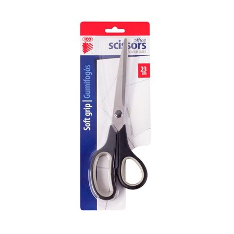 Olló, irodai, 23 cm, gumi fogós, ICO, fekete