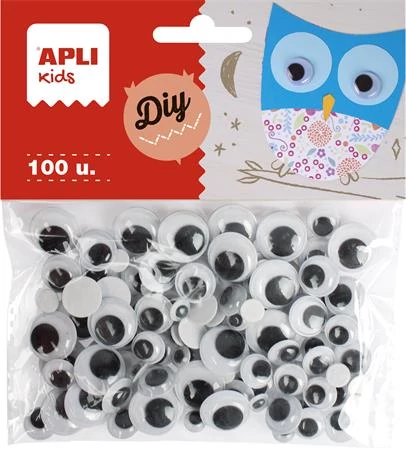 Öntapadó mozgó szem, kör, APLI "Creative", fekete-fehér, 100db/cs