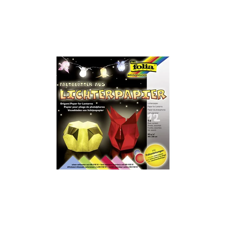 Origami papír, lámpáshoz, 30x30 cm, 80 g, 12 lap, FOLIA, vegyes színek