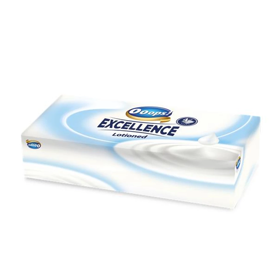 Papír zsebkendő, dobozos, 4 rétegű, 80 db, OOOPS "Excellence Lotioned"