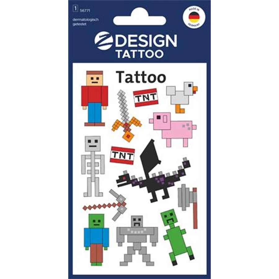 13 db Pixel alakzat tetoválás a varázslatos videojátékból! Tökéletes ajándék, vagy apró meglepetés, amivel hazaérkezik, születésnapi partikra vagy egyszerűen arra, hogy a gyerekek játszanak.?Az ideiglenes tetoválás vízálló, és megtévesztően valódinak tűnik. Egyszerűen vízzel kell felhelyezni, és kis olajjal könnyen eltávolítani. Természetesen a tetoválás csúcsminőségű, gyermekbiztos és dermatológiailag tesztelt és külső laboratóriumok által rendszeresen ellenőrzött. Élvezze saját tetováló stúdióját!