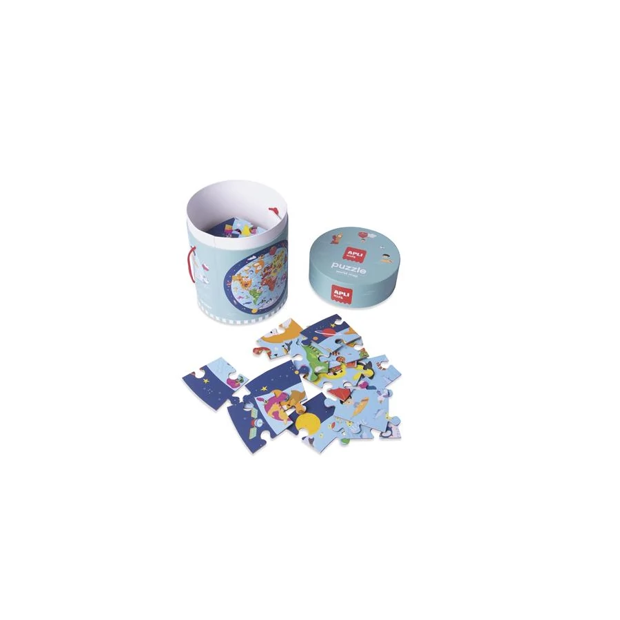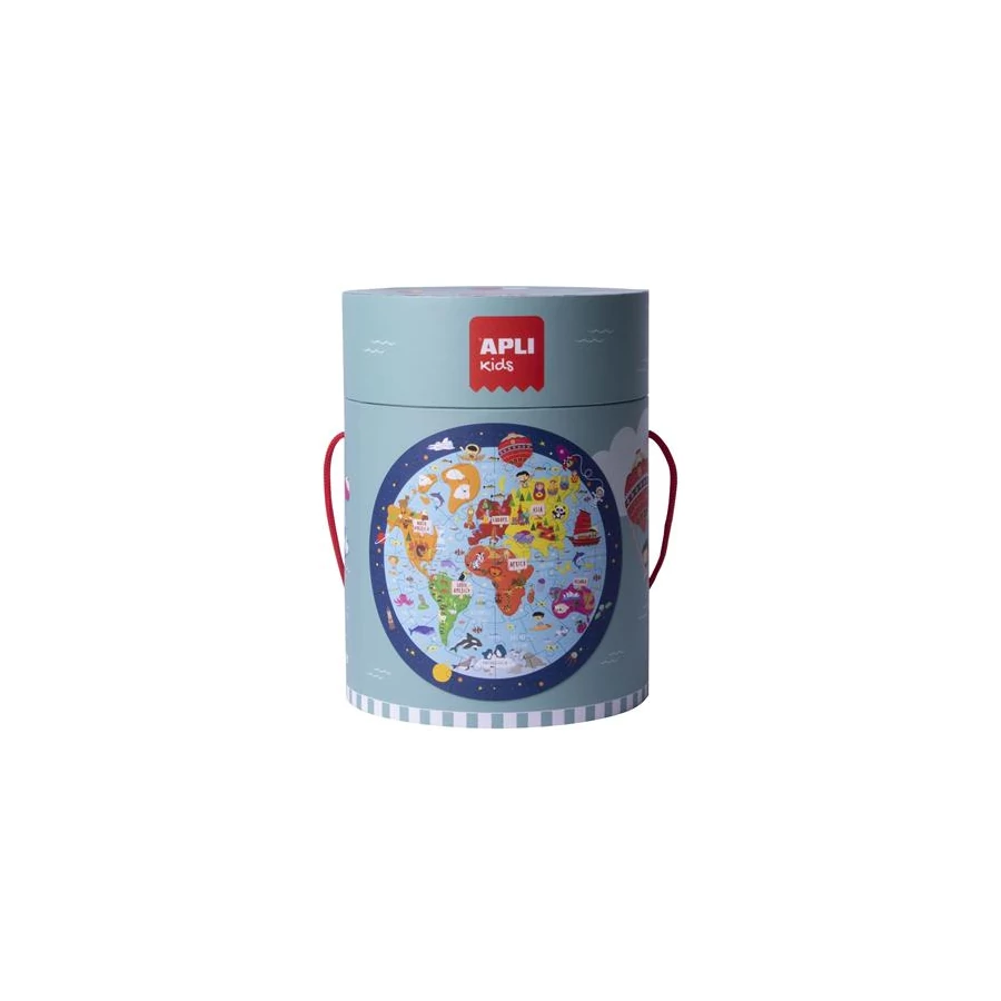 Puzzle, kör alakú, 48 darabos, APLI Kids "Circular Puzzle", világtérkép