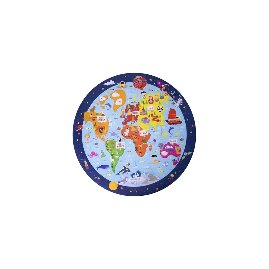 Kör alakú puzzle, mely földünk térképét mutatja be játékos formában. A játék során felfedezhetjük a különböző kontinenseket és óceánokat.