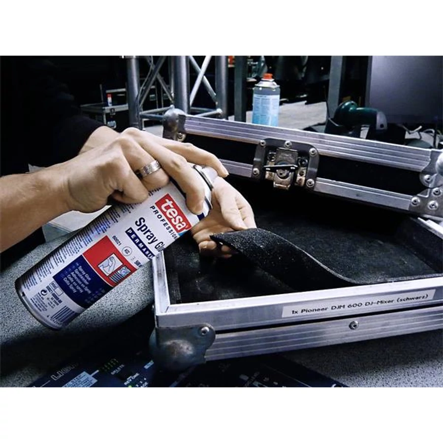 A tesa® extraerős ragasztóspray textilhez, fához, fémhez és műanyaghoz használható és képes erősen összeragasztani még a durva felületű, nehéz anyagokat is.