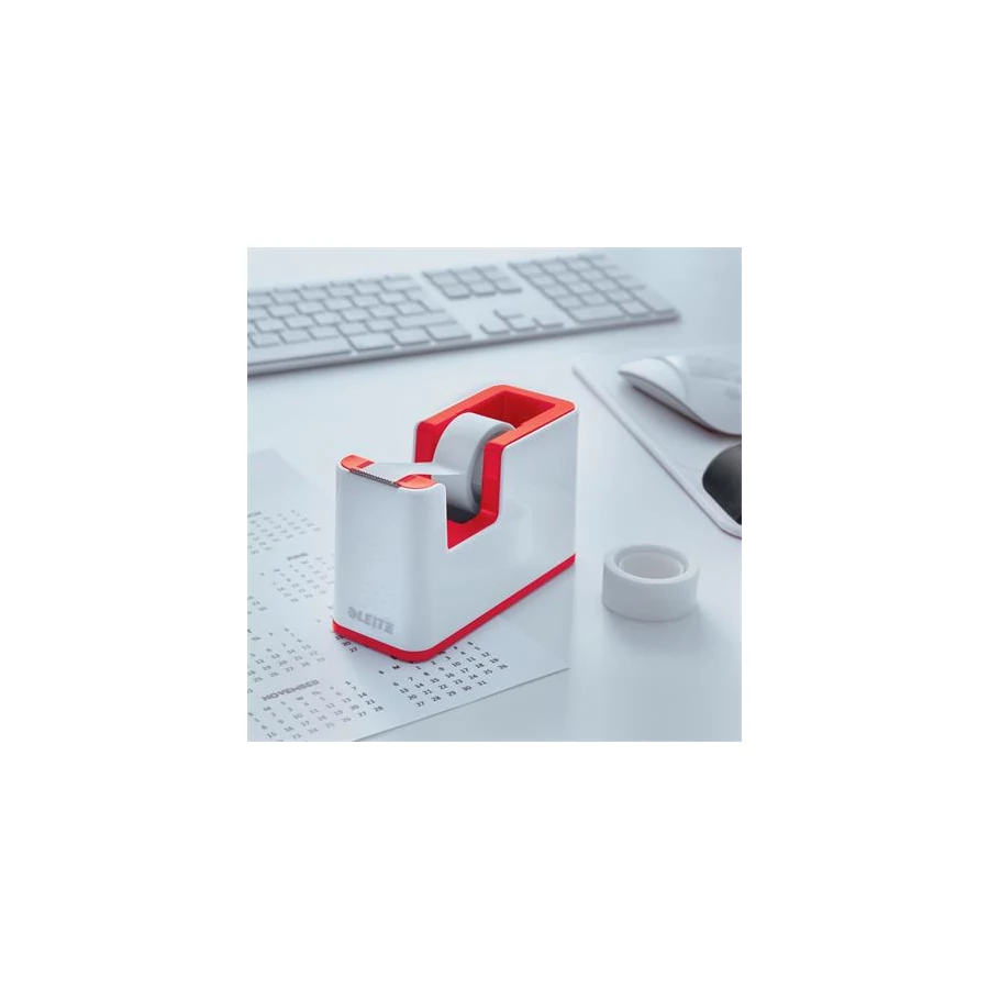 Ragasztószalag-adagoló, asztali, feltöltött, LEITZ "Wow", fehér-piros