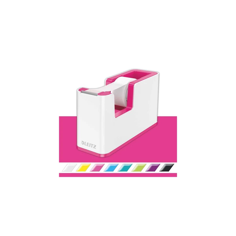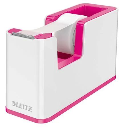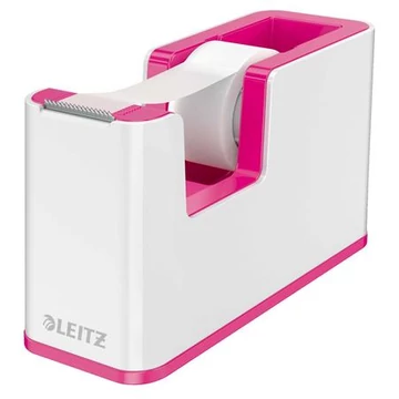Ragasztószalag-adagoló, asztali, feltöltött, LEITZ "Wow", fehér-rózsaszín