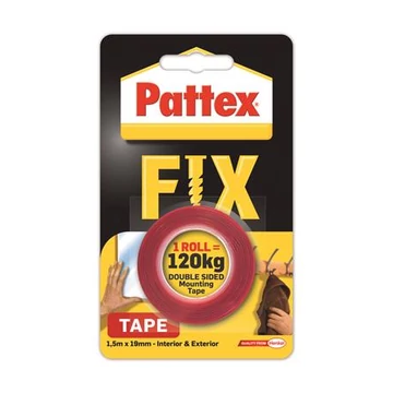 Ragasztószalag, kétoldalas, 19 mm x 1,5 m, HENKEL "Pattex Fix 120 kg", piros
