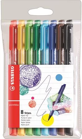 Rostirón készlet, 0,8 mm, STABILO "Point Max", 8 különböző szín