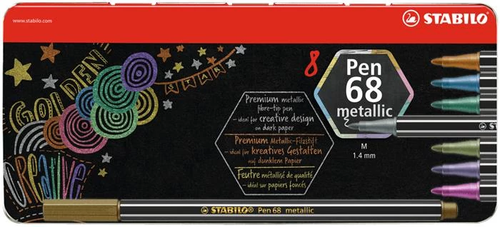 Rostirón készlet, fém doboz, 1,4 mm, STABILO "Pen 68 metallic", 8 különböző szín
