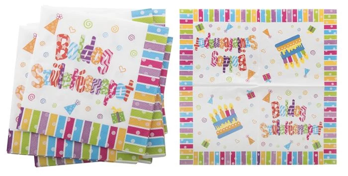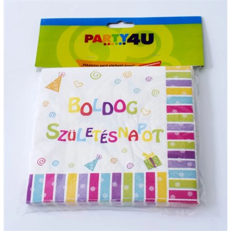 Szalvéta, 33x33cm, "Boldog születésnapot", 16db/cs