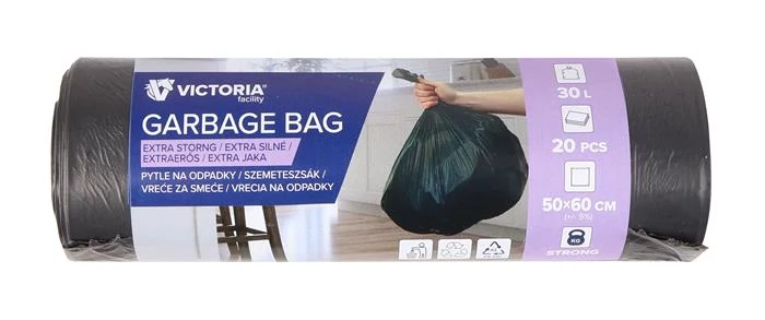Szemeteszsák, extra erős, 30 l, 20 db, 50x60 cm, VICTORIA FACILITY