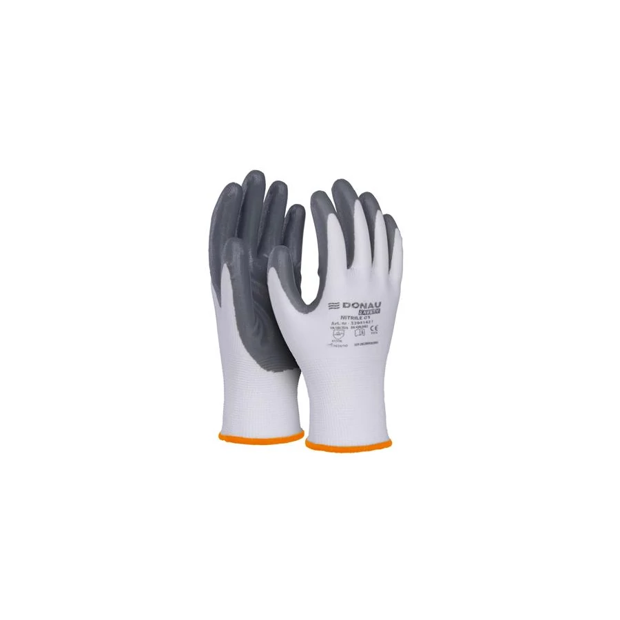 Szerelőkesztyű, nitril, DONAU "Safety 01", 7/S méret, szürke