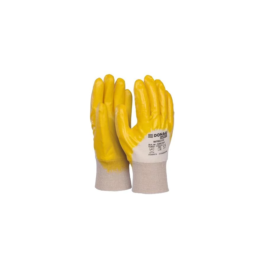 Szerelőkesztyű, nitril, DONAU "Safety 02", 9/L méret, sárga