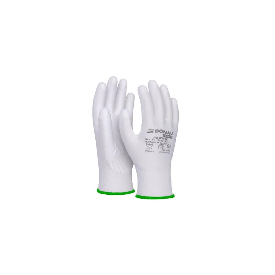 Szerelőkesztyű, PU, DONAU "Safety", 11/XXL méret, fehér
