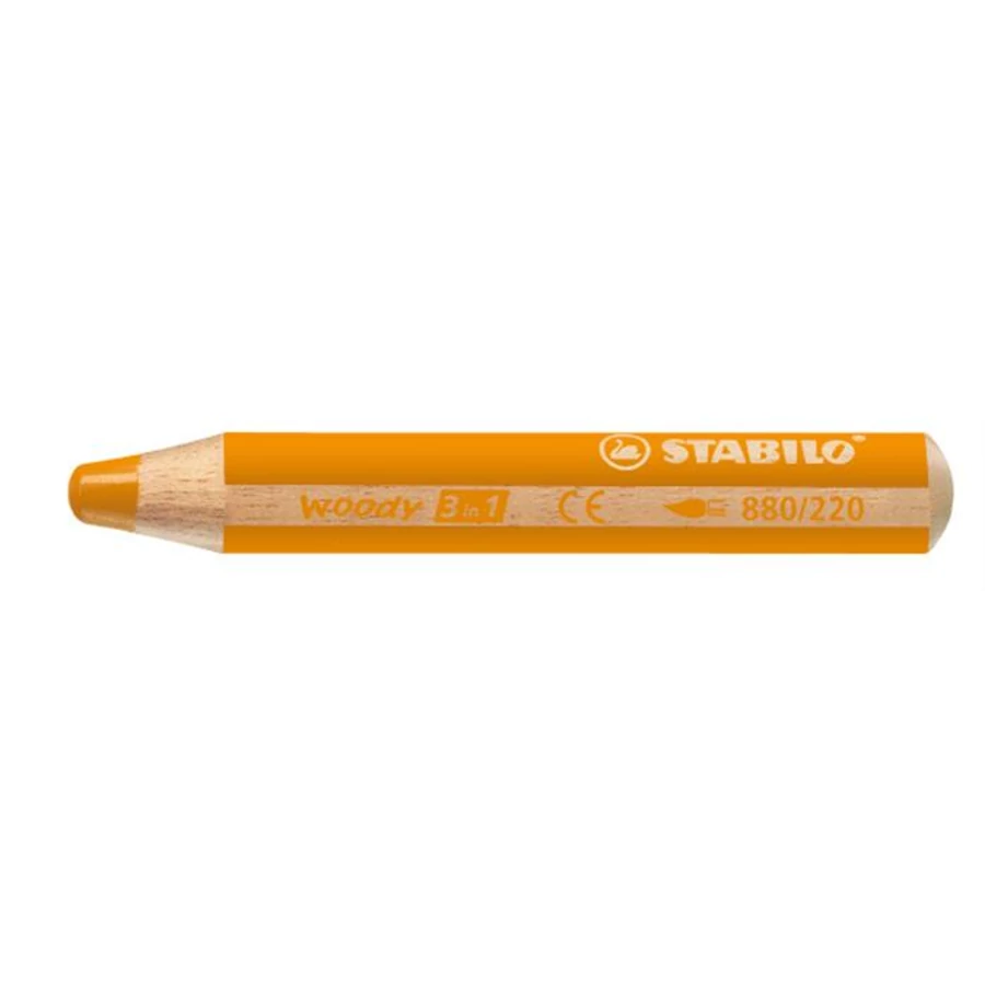 Színes ceruza, kerek, vastag, STABILO "Woody 3 in 1", narancssárga