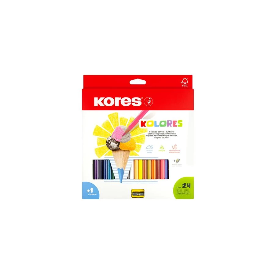 Színes ceruza készlet, háromszögletű, KORES "Triangular", 24 különböző szín