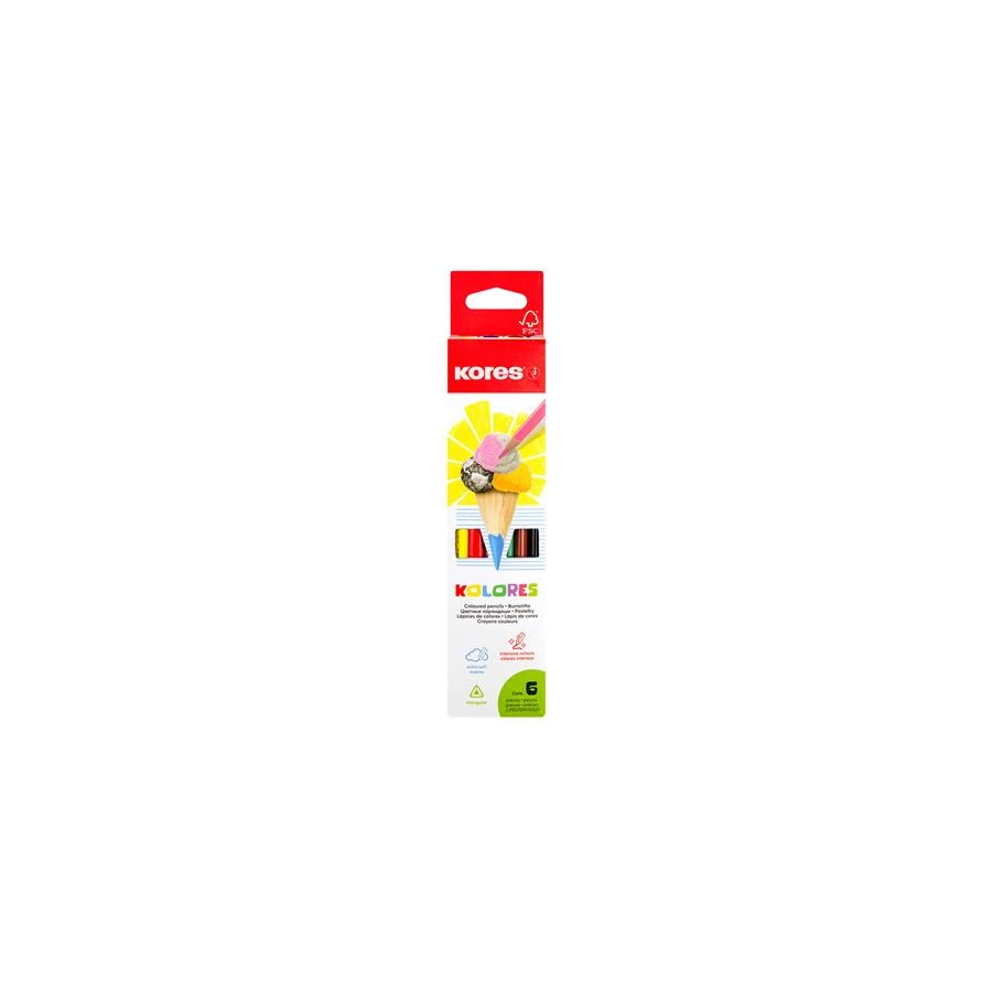 Színes ceruza készlet, háromszögletű, KORES "Triangular", 6 különböző szín