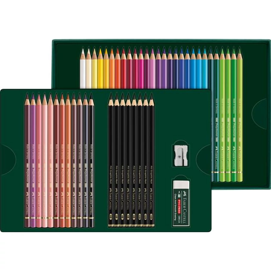 Színes- és grafitceruza készlet, FABER-CASTELL "Polychromos & Pitt Graphite Matt" , 50 db-os szett