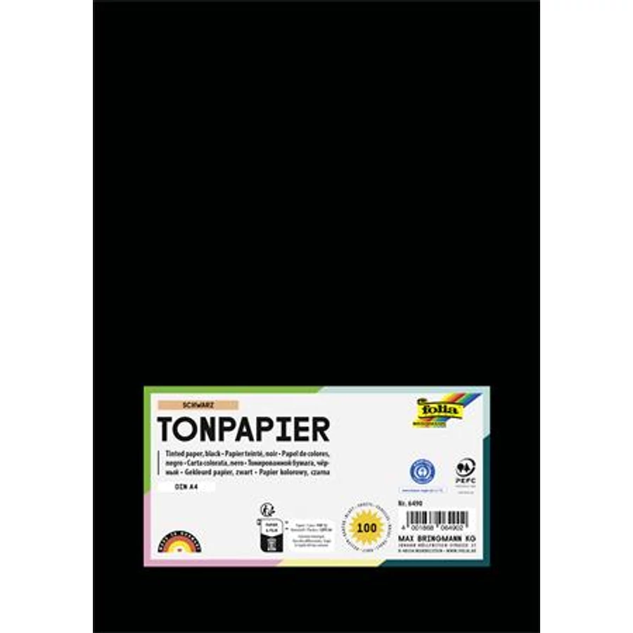 Színes papír, A4, 130 g, 100 lap, FOLIA, fekete