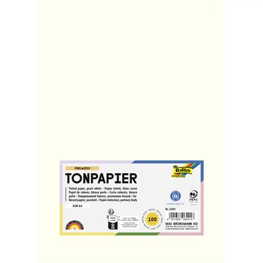 Színes papír, A4, 130 g, 100 lap, FOLIA, gyöngyfehér