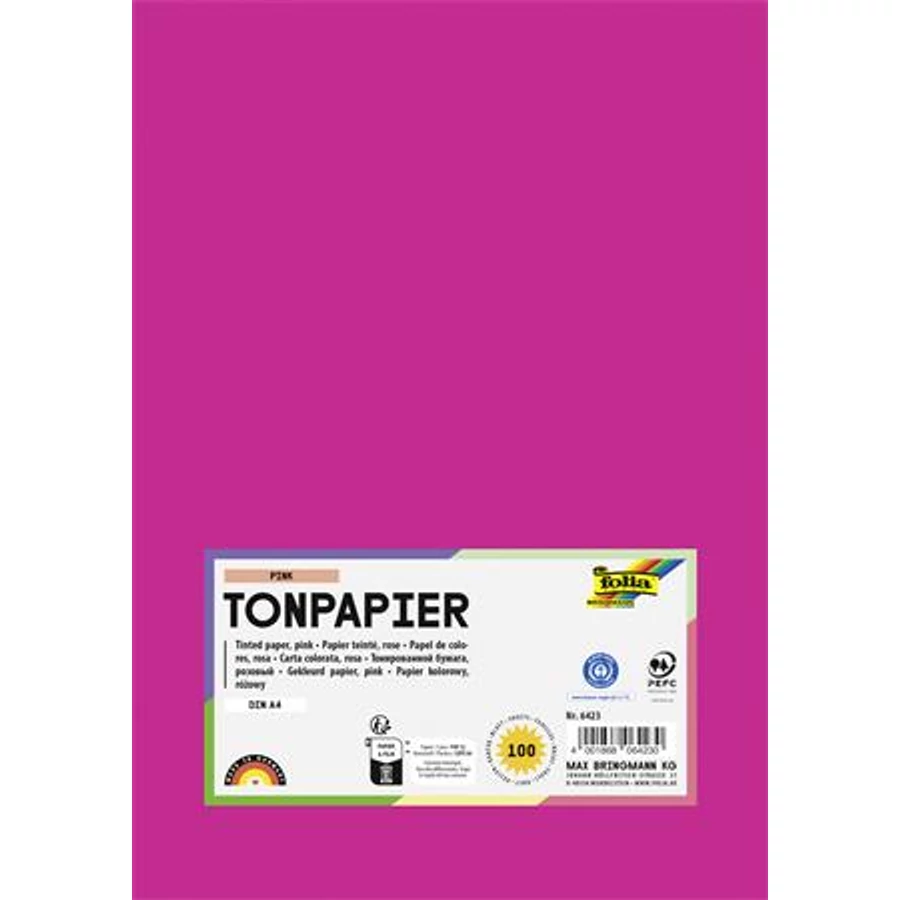 Színes papír, A4, 130 g, 100 lap, FOLIA, rózsaszín