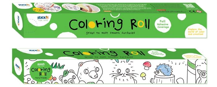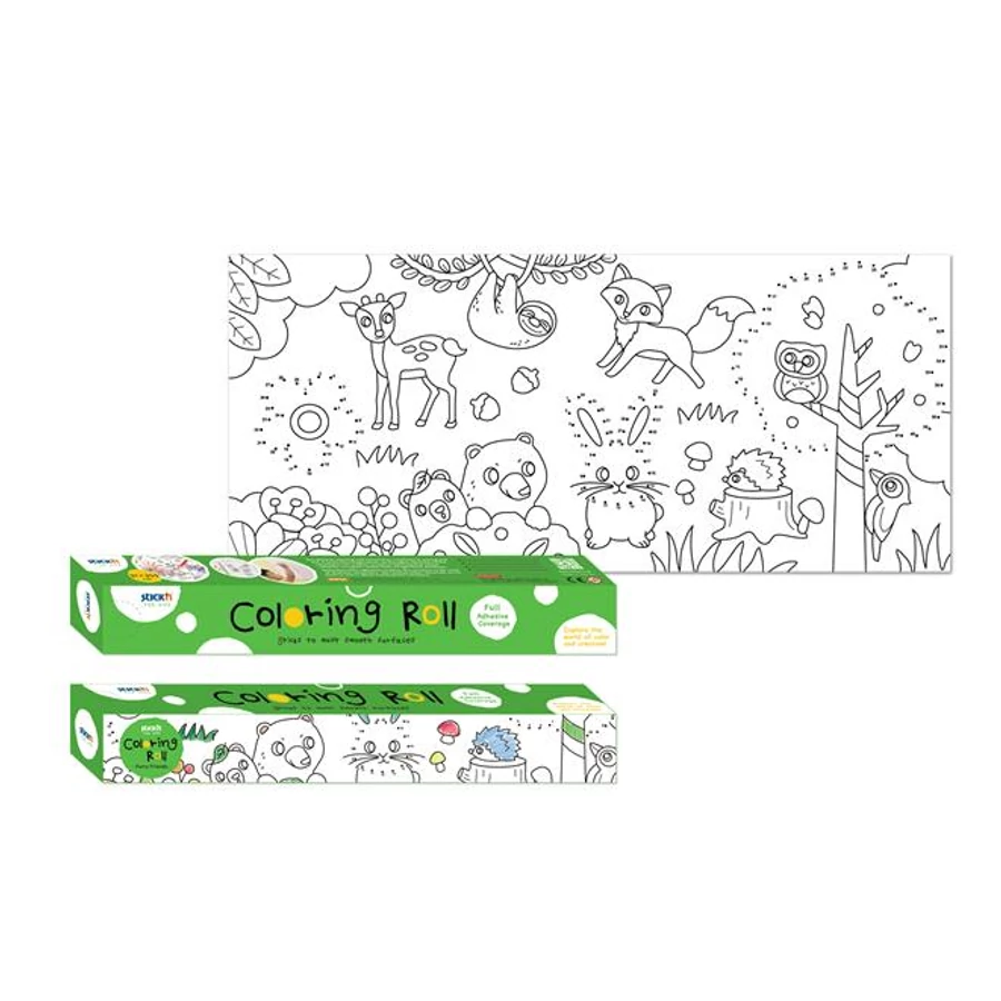 Színező tekercs, öntapadó, 31x355 cm, STICK N, erdei állatok