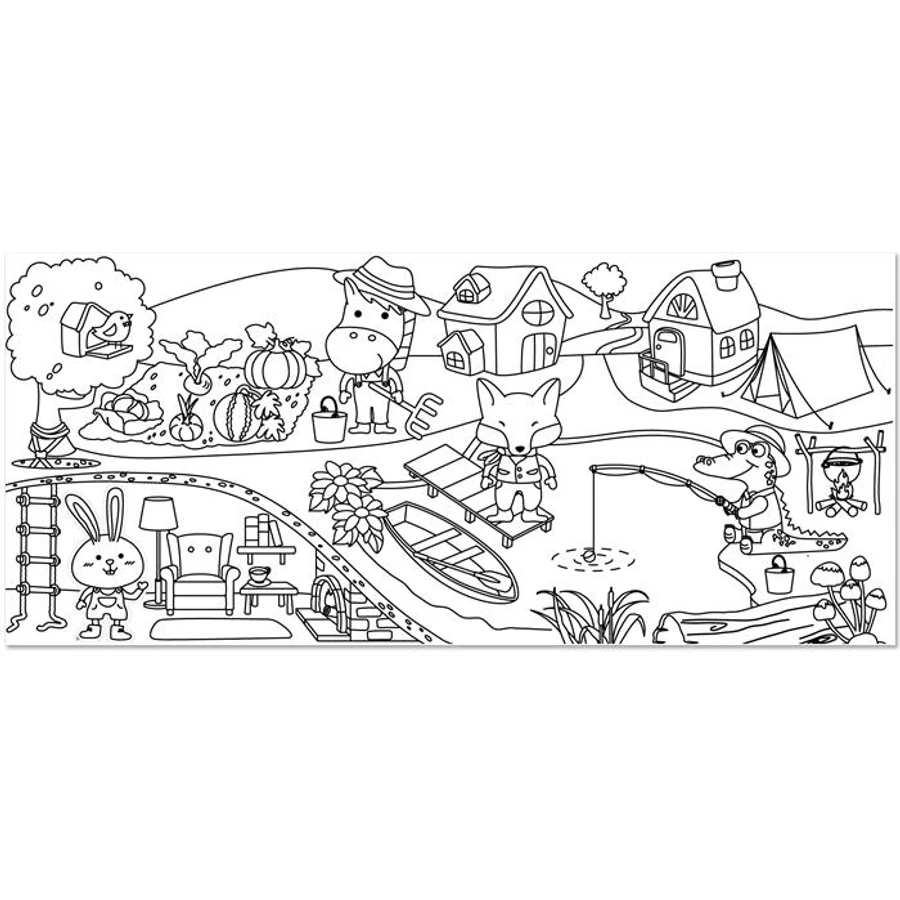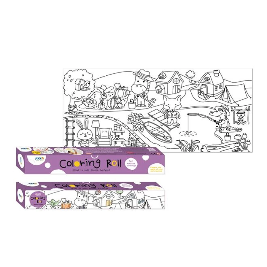 Színező tekercs, öntapadó, 31x355 cm, STICK N, vidám falu