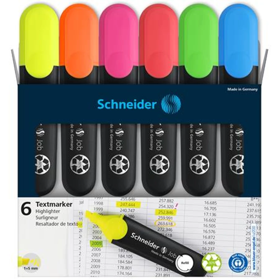 Szövegkiemelő készlet, 1-5 mm, SCHNEIDER "Job 150", 6 különböző szín