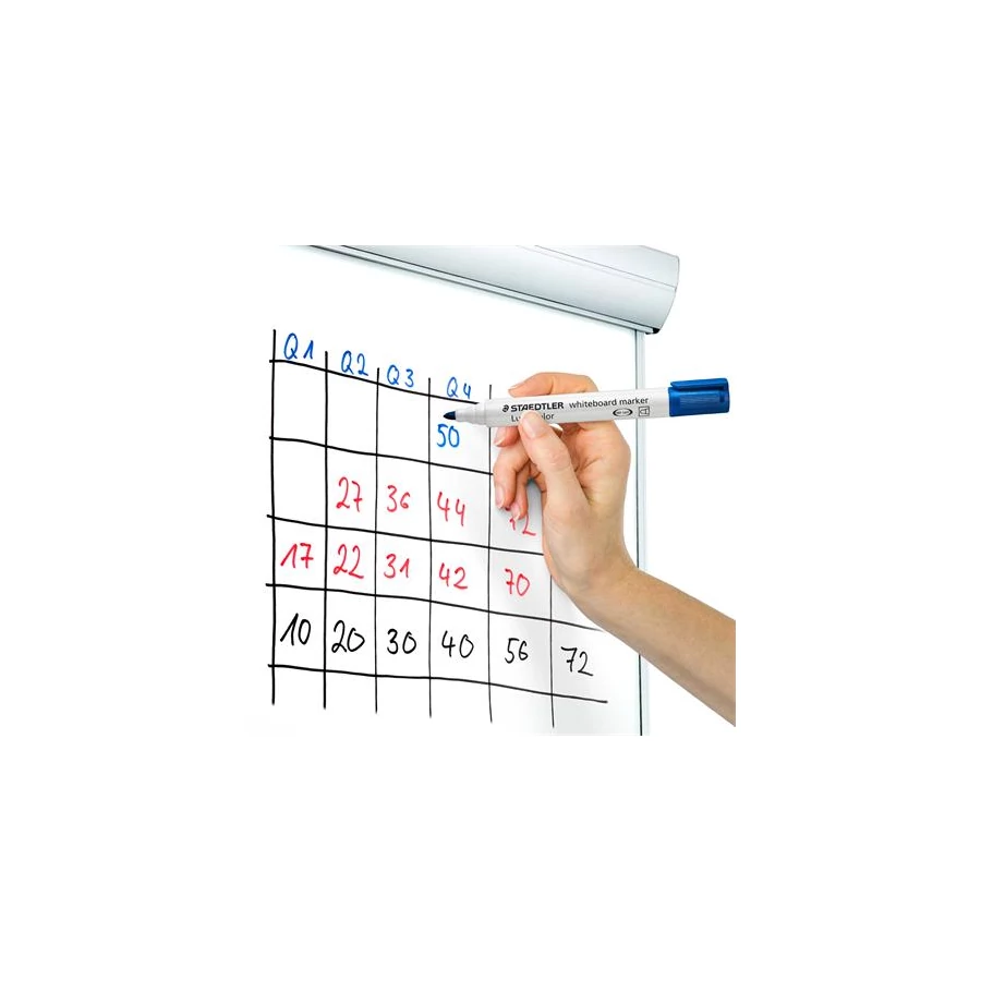 A STAEDTLER táblamarkerek különösen hasznosak előadásokhoz és prezentációkhoz, valamint kiválóan alkalmasak rajzolásra és jegyzetelésre az irodai brainstorming során. Mindenekelőtt fehér táblákon, speciálisan bevonatú táblákon és sima felületeken való használatra tervezték őket.