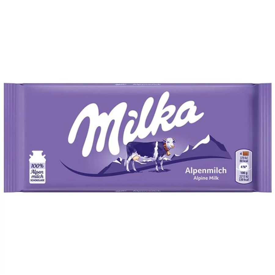Táblás csokoládé, 100 g, MILKA, alpesi tej