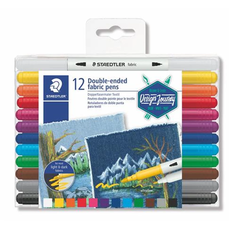 Textilmarker, kétvégű, STAEDTLER "3190", 12 különböző szín