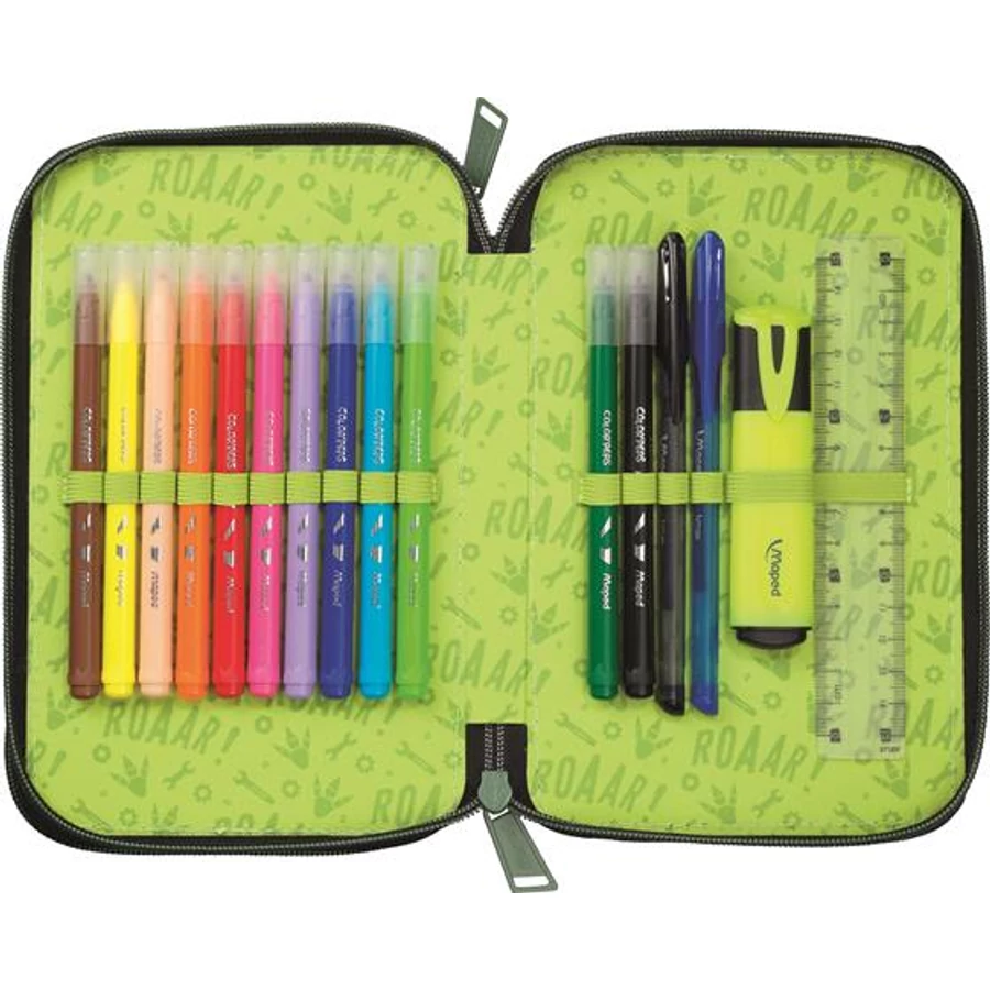 Tolltartó, töltött, 2 emeletes, cipzáras, MAPED, dinoszaurusz
