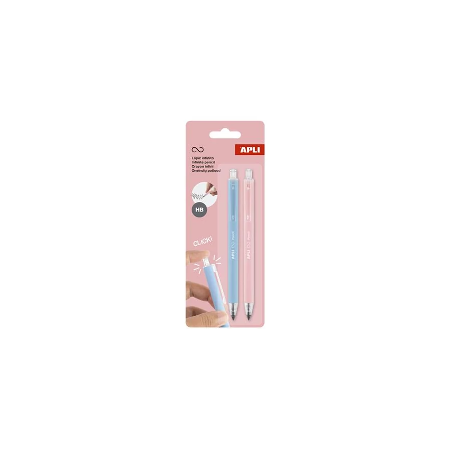 Töltőceruza, HB, nyomógombos, APLI "Infinite Click", kék és rózsaszín