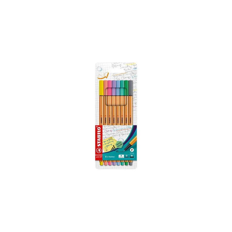 Tűfilc készlet, 0,4 mm, STABILO "Point 88", 8 pasztell szín