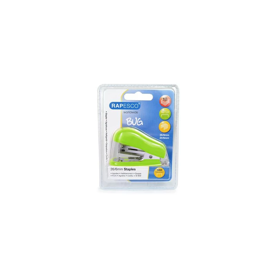 Tűzőgép, 24/6, 26/6, 12 lap, RAPESCO "Bug Mini", zöld
