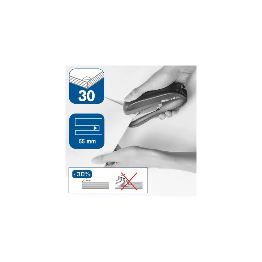 - ergonomikus, féltáras tűzőgép lapos tűzési technológiával és erős, acél szerkezettel a precíz tűzés érdekében