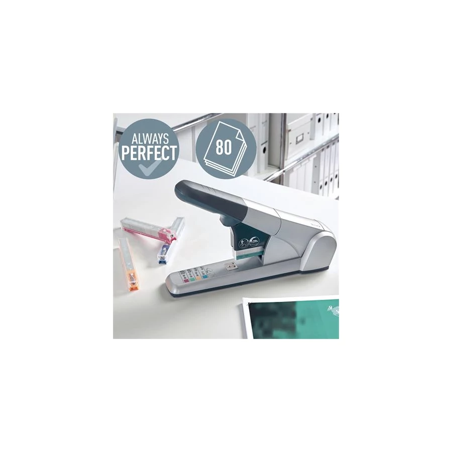 Tűzőgép, nagyteljesítményű, 80 lap, LEITZ "5551", ezüst