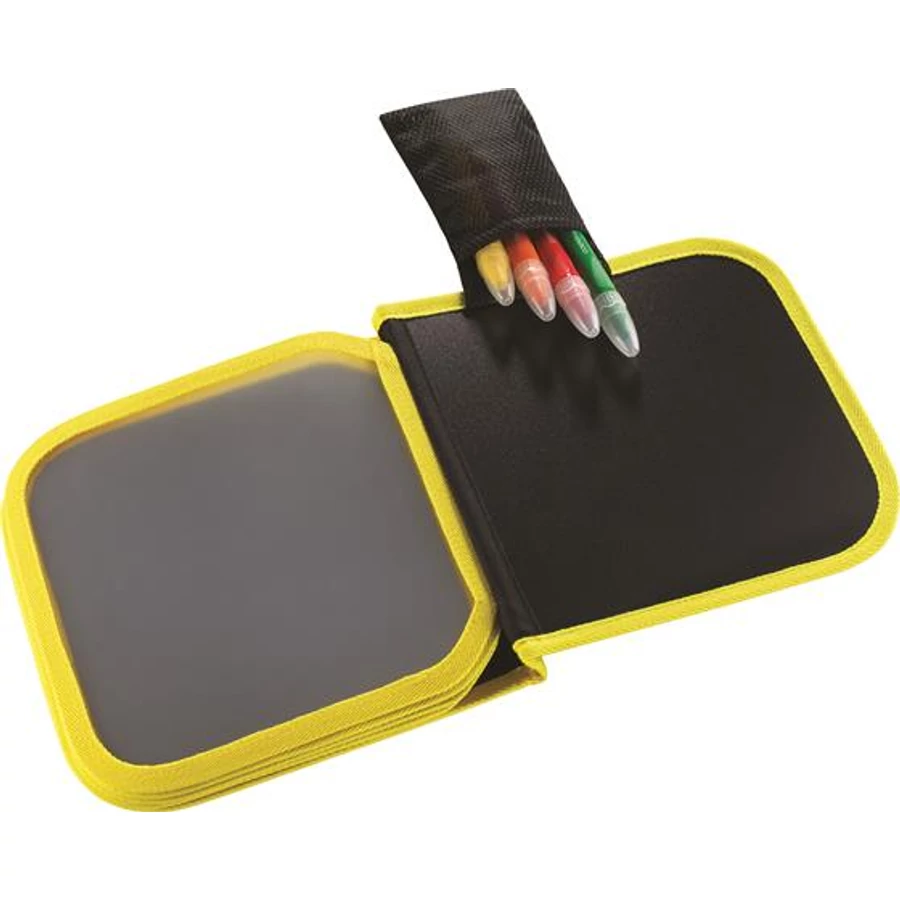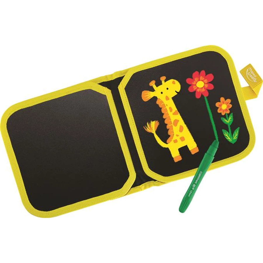 -1 hordozható könyv rajzoláshoz, krétákat tároló zsebbel felszerelve