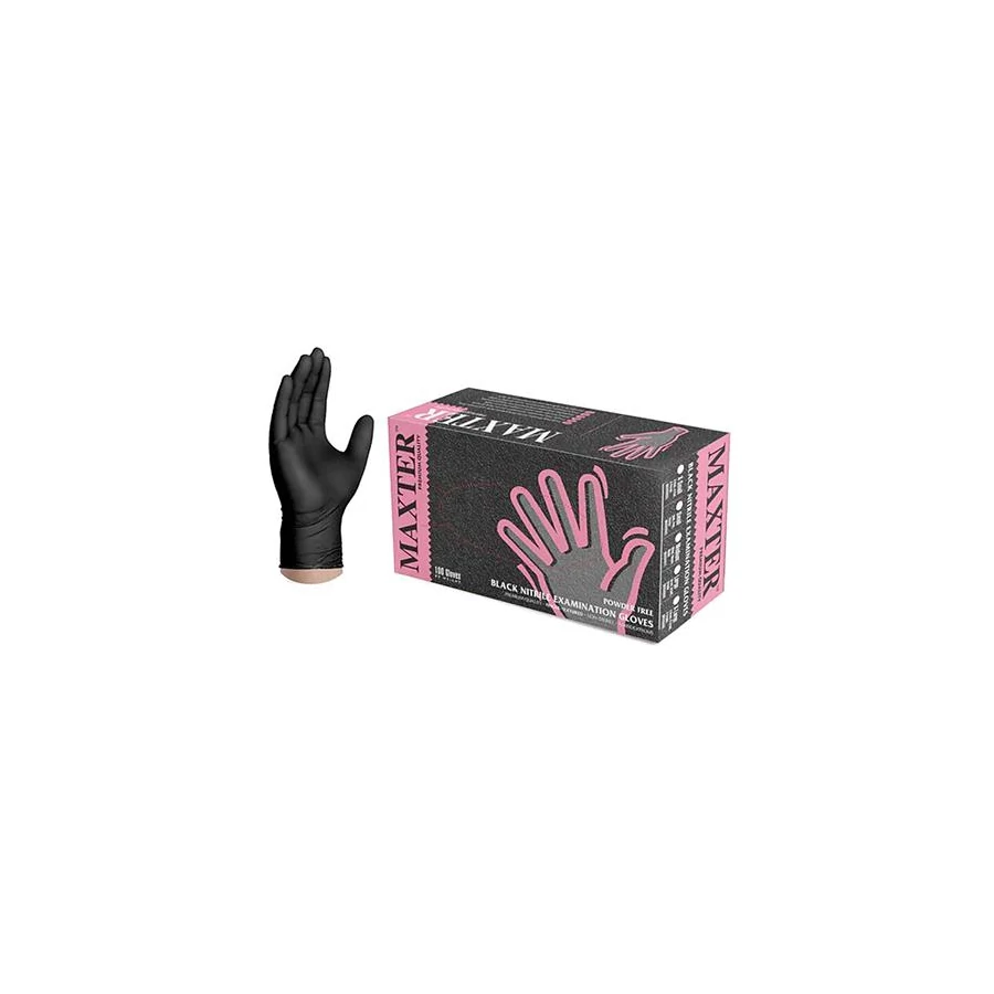 Védőkesztyű, egyszer használatos, nitril, XL méret, 100 db, púder nélküli, fekete