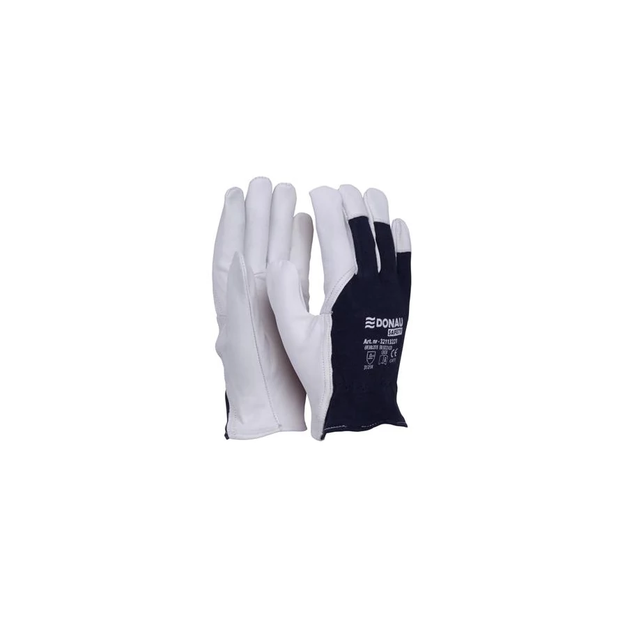 Védőkesztyű, kecskebőr, DONAU "Safety", 10/XL méret, fehér-tengerészkék