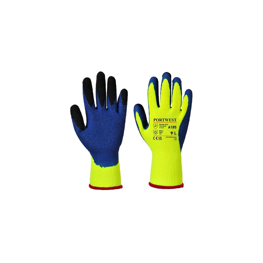 Védőkesztyű, latex, L méret "Duo-Therm", sárga-kék
