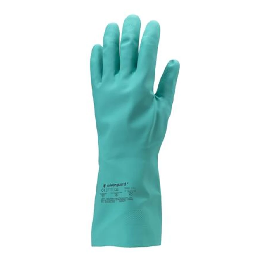 Védőkesztyű, nitril, vegyszerálló, érdesített, kesztyű, 10/XL méret, zöld