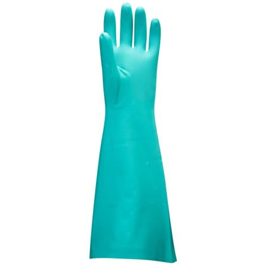 Extra hosszú, 48 cm vegyszerálló kesztyű, mely kiválló védelmet nyújt számos oldószer ellen.
