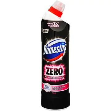 A Domestos Zéró WC vízkőoldó sűrű állagának köszönhetően hosszú ideig megtapad a WC falán, akár a víz alatti részeken és a függőleges felületeken is. Savas formulájának köszönhetően segít eltávolítani a WC csészéből a makacs vízkövet, ezáltal a benne megbúvó kórokozókat is, így nem csak szebbé, hanem higiénikusabbá is teszi a WC-t!