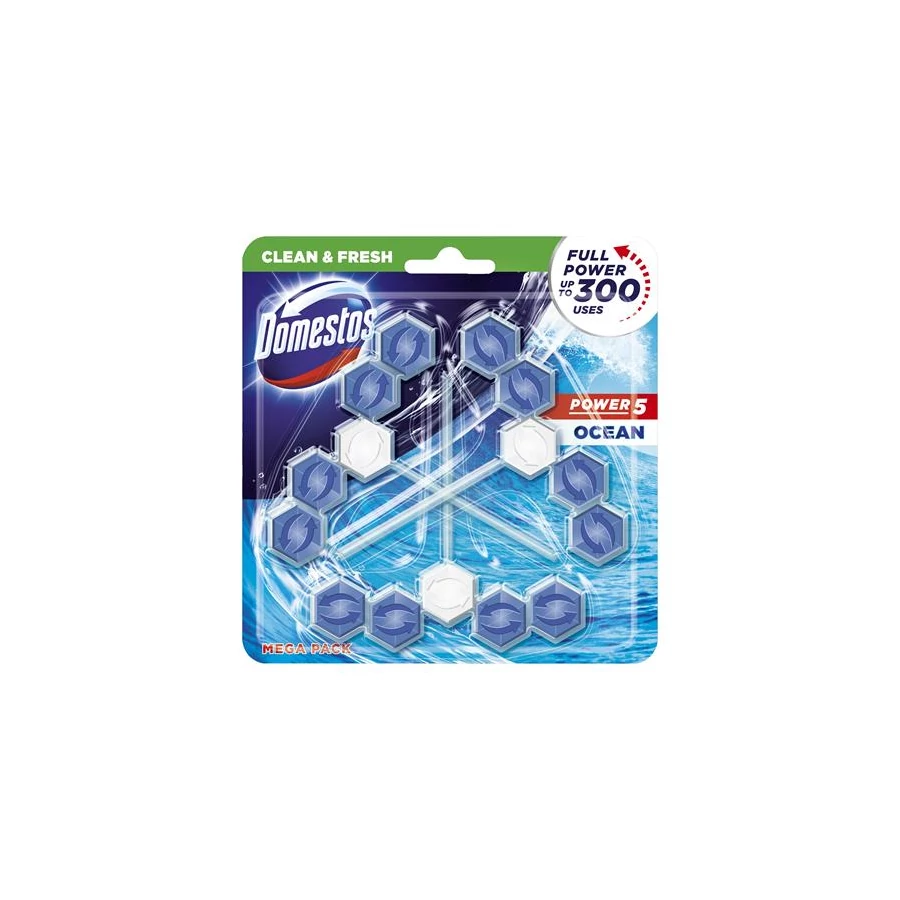 A Domestos Power5 WC frissítő blokkja segít megelőzni a koszt és a vízkőlerakódásokat a takarítások között is. Minden egyes öblítés után bőséges habot hagy maga után, amely segít megakadályozni a vízkőlerakódást, eltűntetni a koszt, és ragyogóvá tenni a WC kagylót, amely hosszan tartó kellemes illatot áraszt magából.