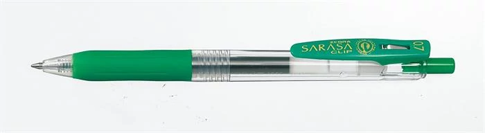 Zseléstoll, 0,37 mm, nyomógombos, ZEBRA "Sarasa Clip", zöld